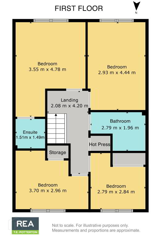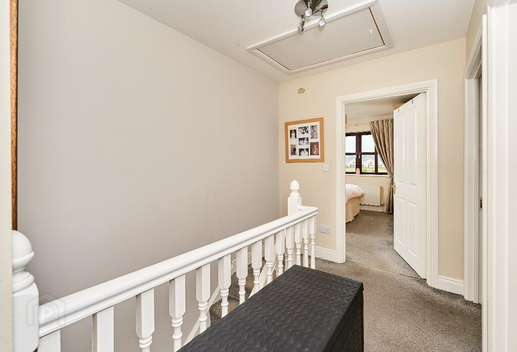 Carpeted staircase leads to a spacious landing, giving access to four large double rooms, all of which feature ample storage, the master boasting a generous ensuite. A shared family bathroom completes the accommodation.