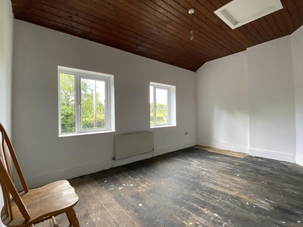 The Residence contains the original rooms and front porch and has been extended to the rear to include a new Kitchen space with superb views towards the Wicklow Hills. Both Bedrooms are double, each with the original timber-lined eaved ceilings, the front living area is equipped with a solid fuel stove and the Bathroom is fully plumbed.