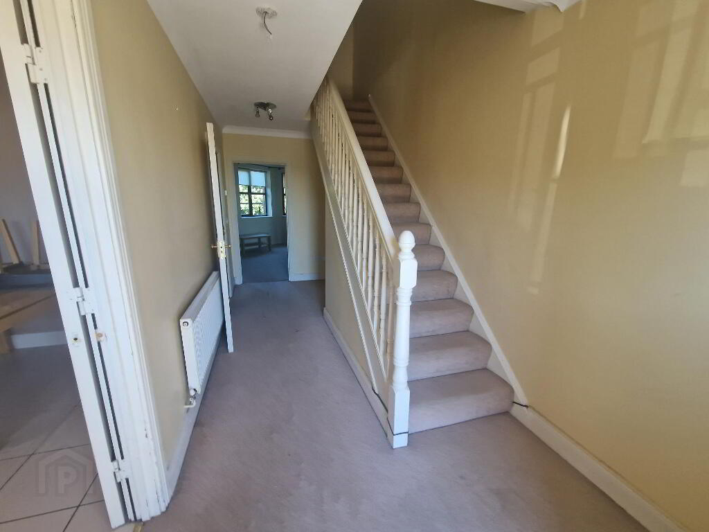 Carpeted staircase leads to first floor landing featuring hot press, shared family bathroom and three double bedrooms, the master of which boasts an ensuite.