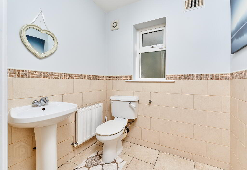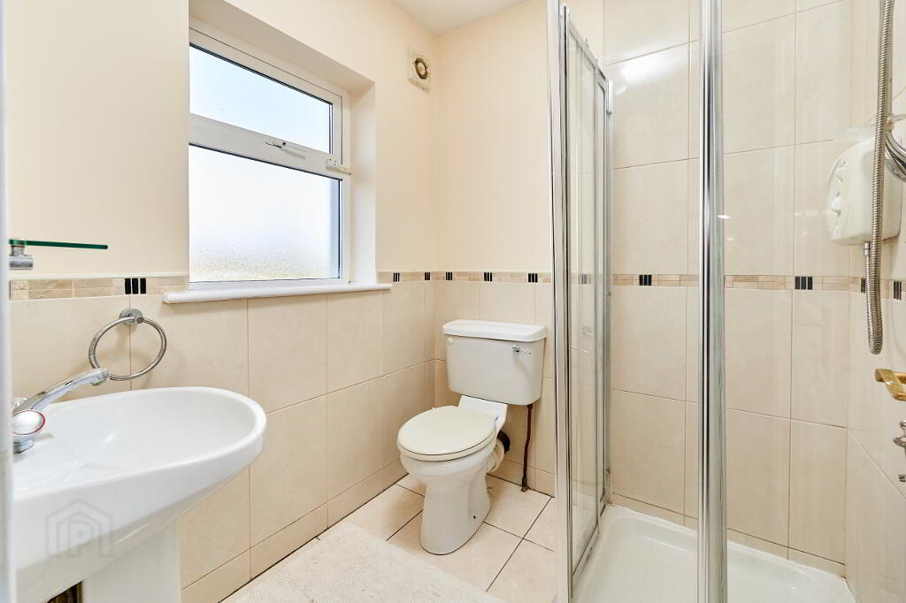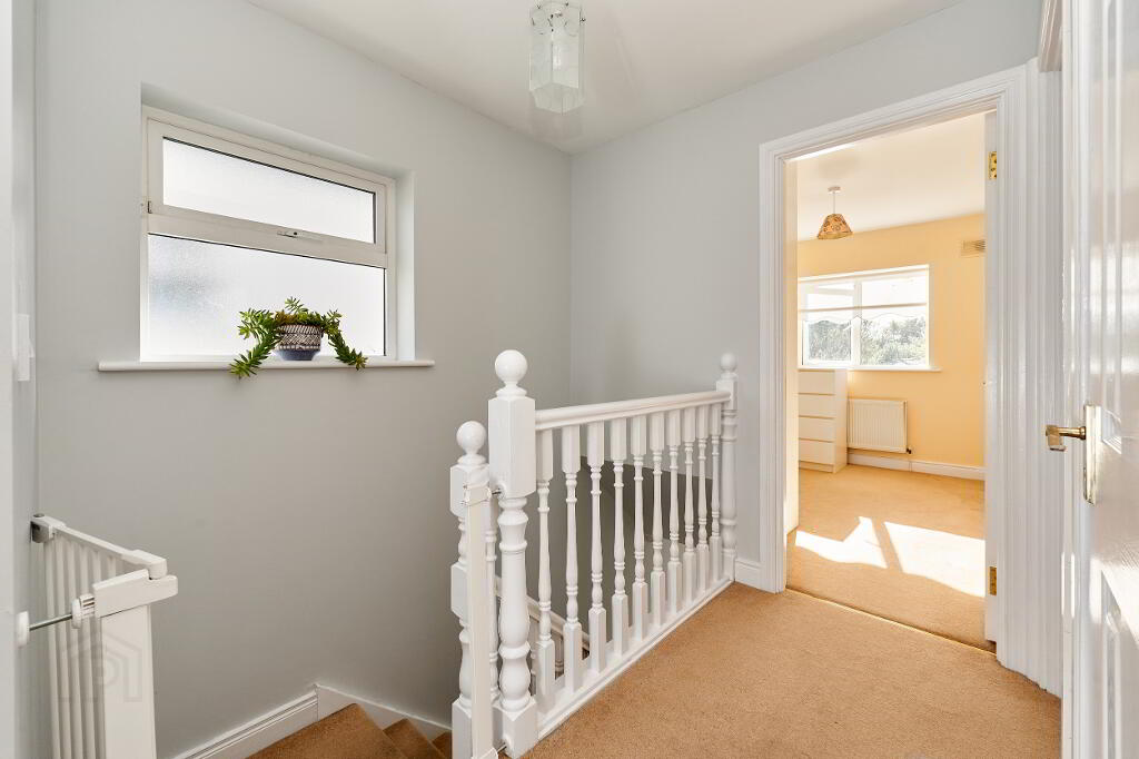 Guiding upstairs, carpeted stairs and landing give access to 3 large double bedrooms, the master of which has the benefit of boasting an en suite, there is ample storage throughout and a hot press. Shared family bathroom completes the accommodation.