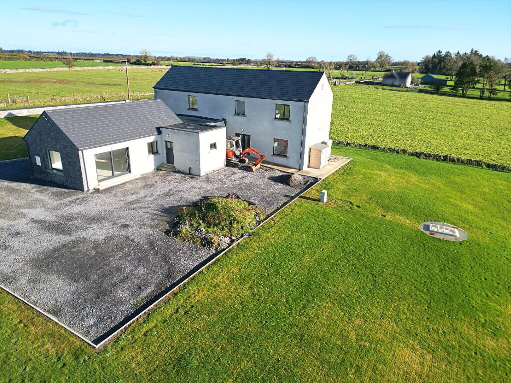 REA Seamus Carthy are proud to present a stunning new built A-rated 5 Bedroom family home that offers the perfect blend of modern design and energy efficiency, ensuring year-round comfort with low running costs picturesquely set in attractive rural setting within highly accessible location.. Built to the highest standards, it features high-quality insulation, an advanced heating system, and spacious, light-filled interiors. The open-plan kitchen and dining area provide an ideal space for family gatherings, while generously sized bedrooms offer comfort and privacy. Accommodation comprises Entrance hallway, living room, kitchen/dining/living, Office, Utility, Shower room, Bathroom and 2 no. double bedrooms at ground floor. At first floor, we have 3 no. double bedrooms and a shower room. Conveniently located, this home is within easy reach of Athlone, Roscommon, and Ballinasloe, offering excellent access to all amenities. With its prime rural location and sustainable design, this property is an ideal choice for families seeking a future-proof home in a well-connected setting. Furthermore, opportunity exists to purchase further lands should market interest dictate. Don't miss out on this fantastic opportunity - schedule a viewing today with REA Seamus Carthy 090 66 30001 and joint selling agent Oates Auctioneers.