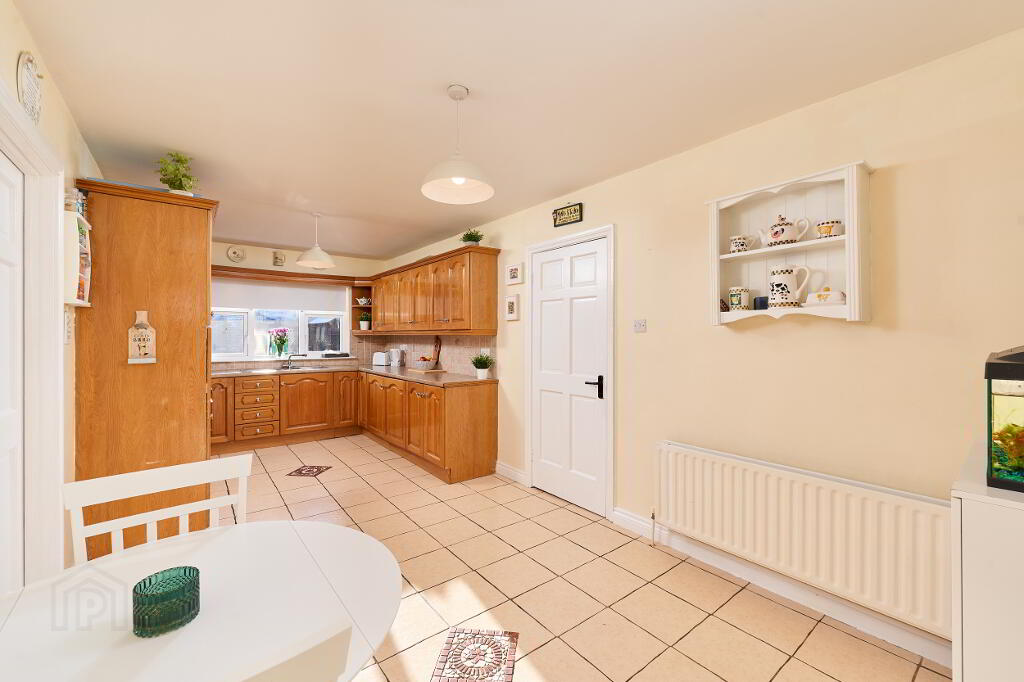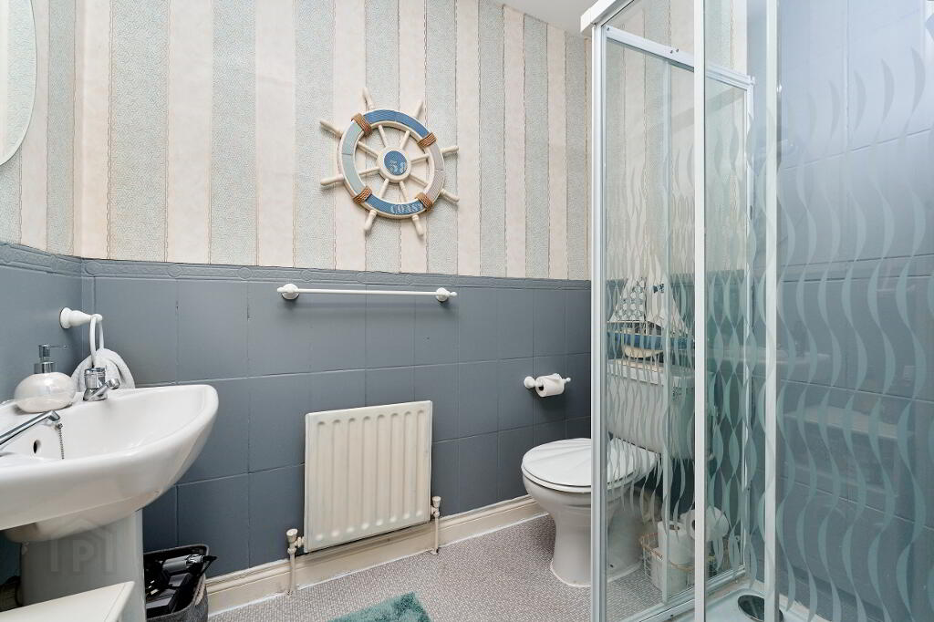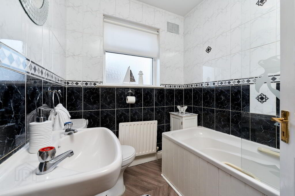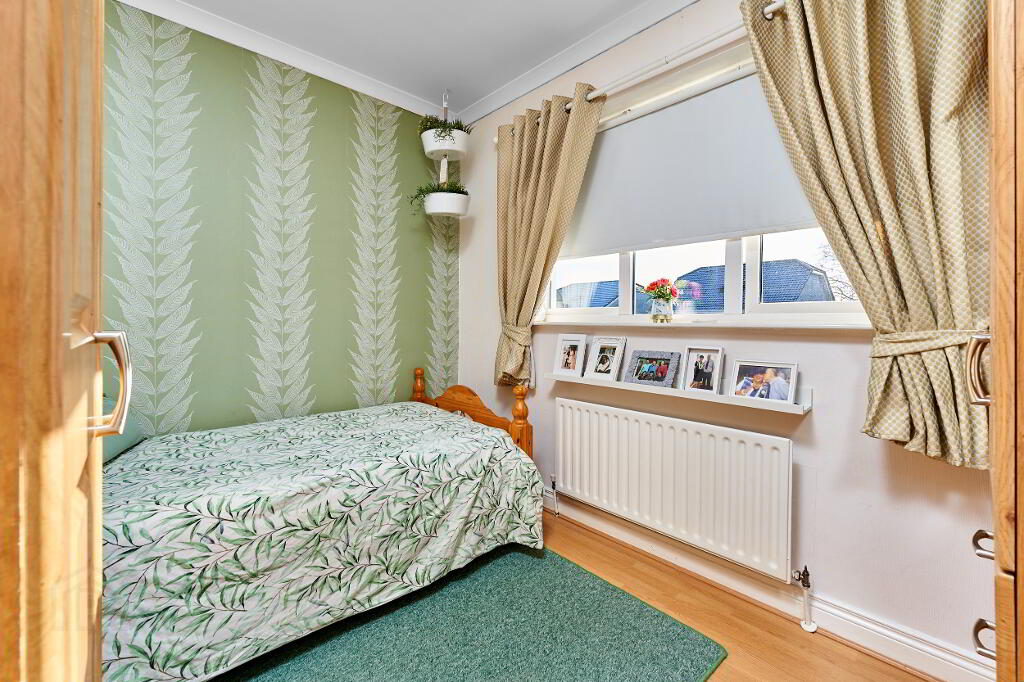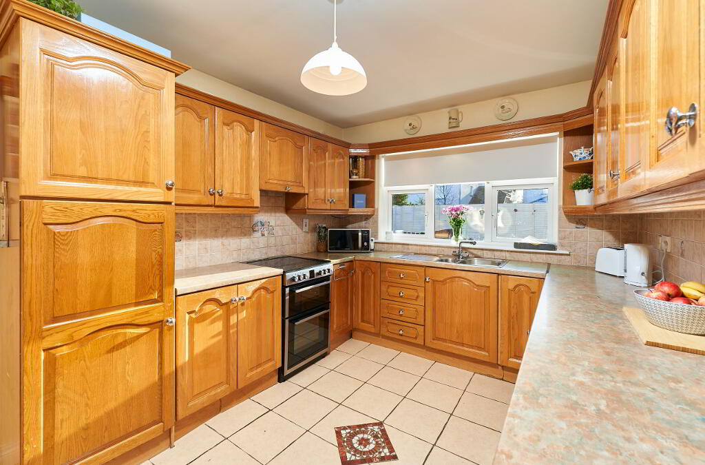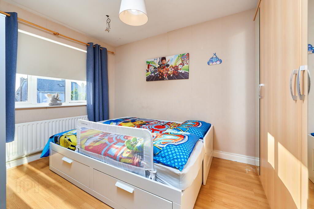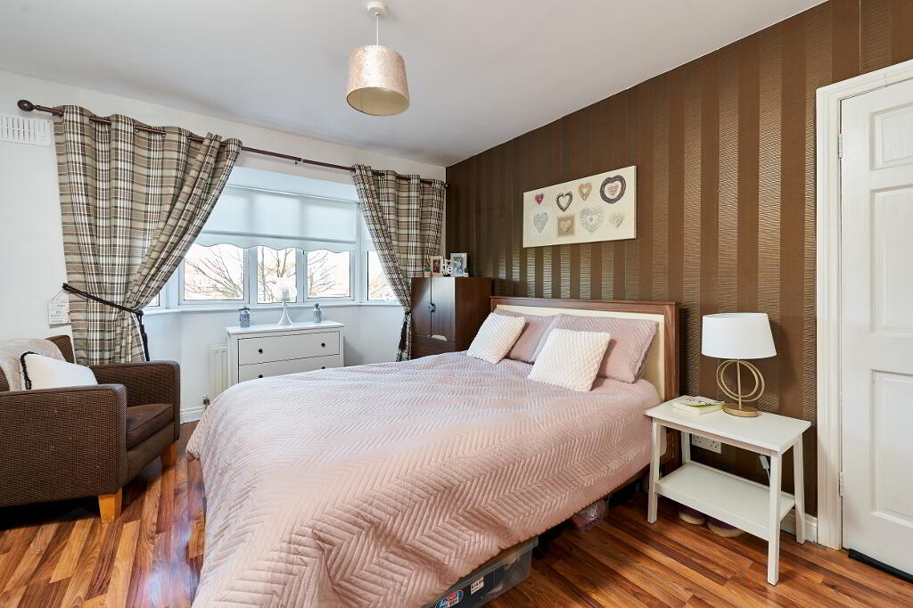 Carpeted staircase leads to the first floor landing featuring a double hot press. Three spacious bedrooms all with ample storage and wardrobe space, the fourth bedroom comprising the master, having the benefit of being en-suite.