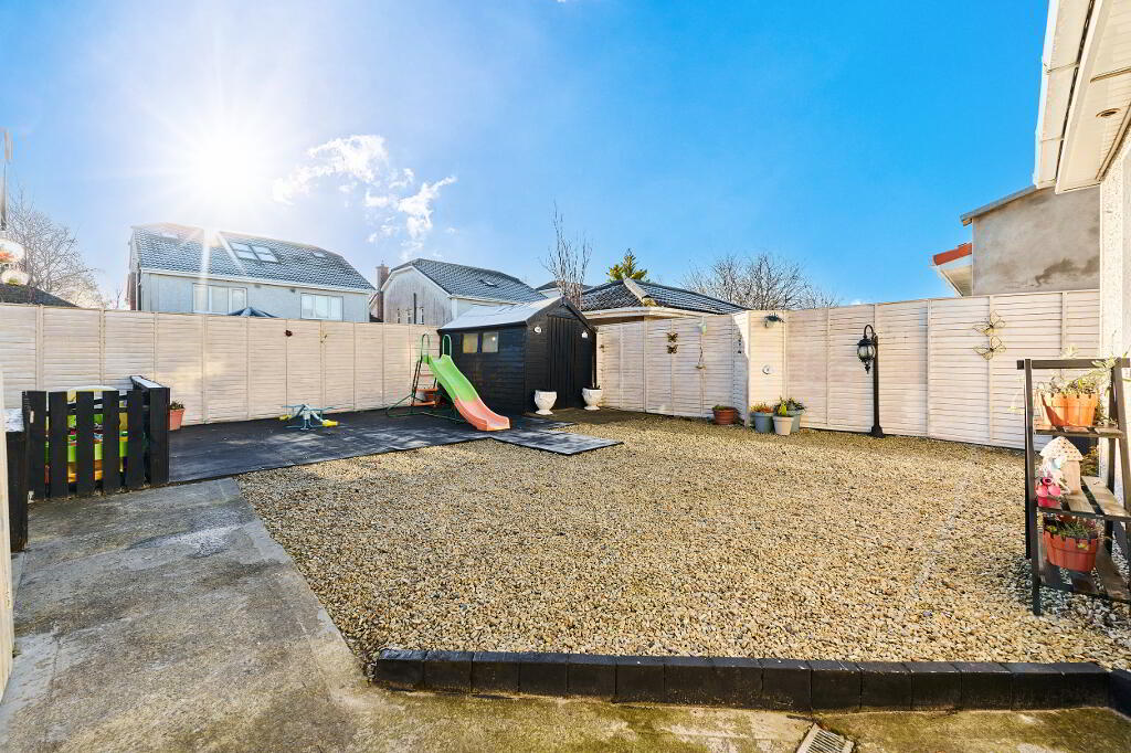 Stepping outside into the expansive, low maintenance back garden which has the added bonus of an enviable, southerly aspect. Currently housing a garden shed with soft play tiles and a gravelled barbecue area that forms a perfect sun trap for those long summer evenings.