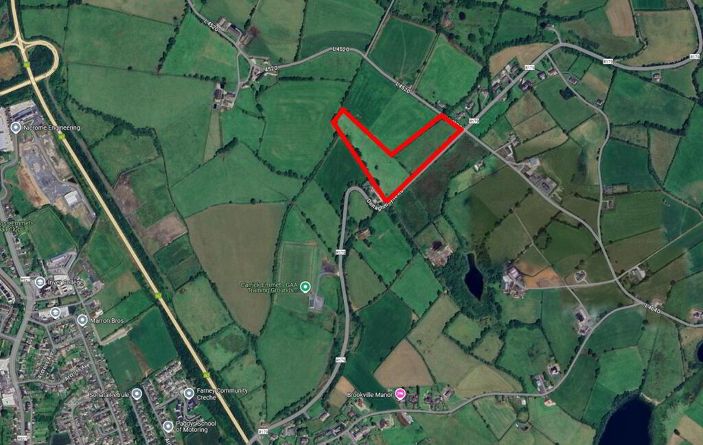 An excellent parcel of pastureland with extensive frontage to the R179 Carrickmacross to Culloville road and also minor road, 2 km from Carrickmacross at Longfield Cross.