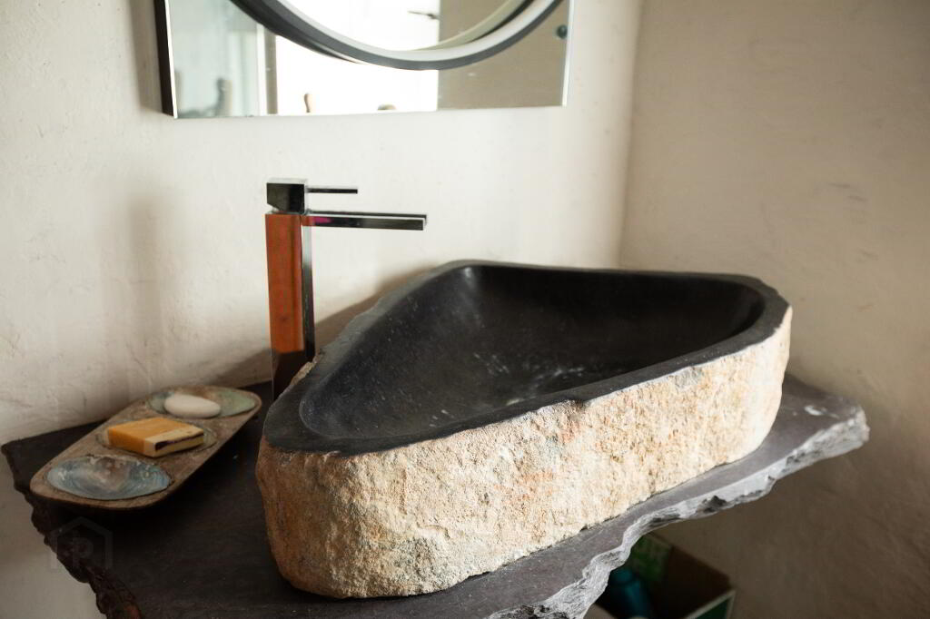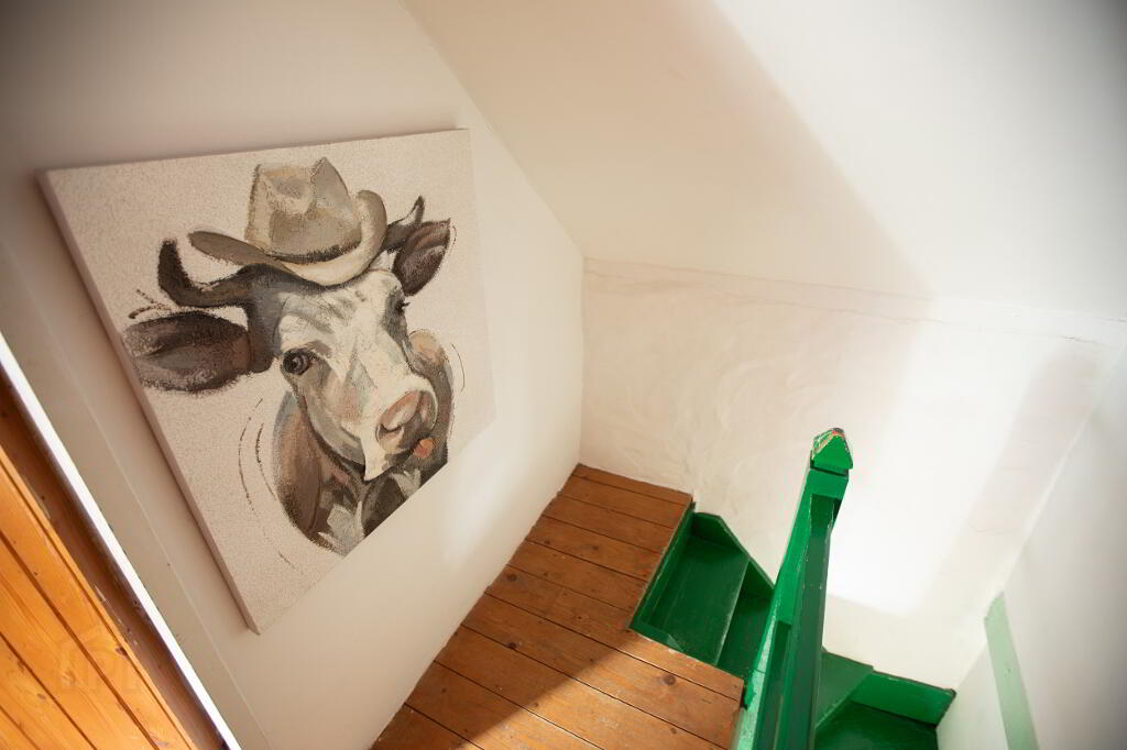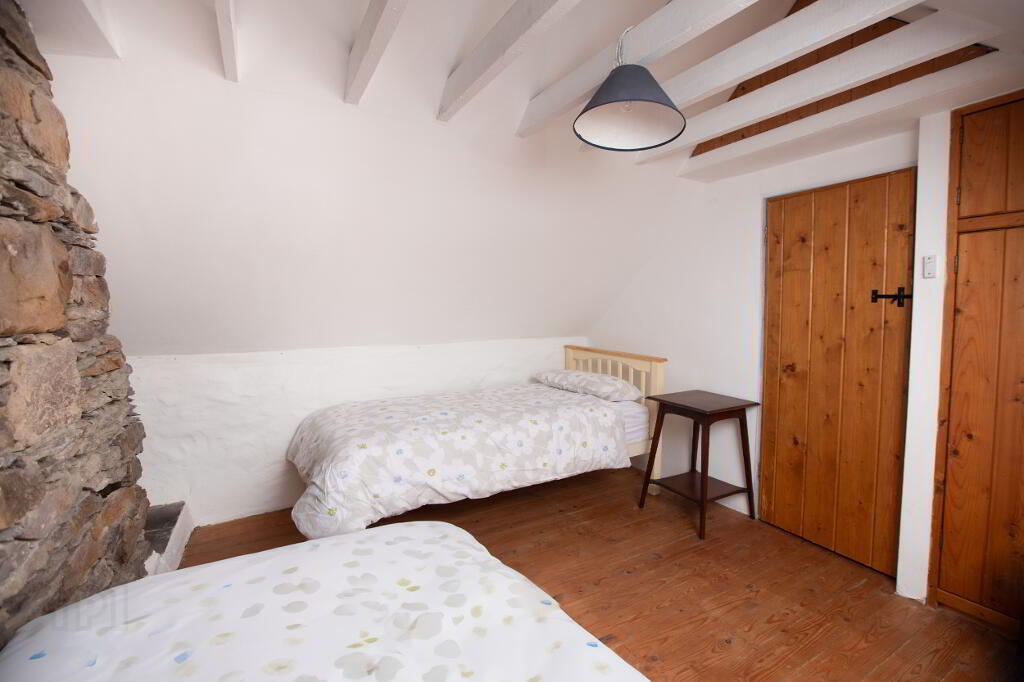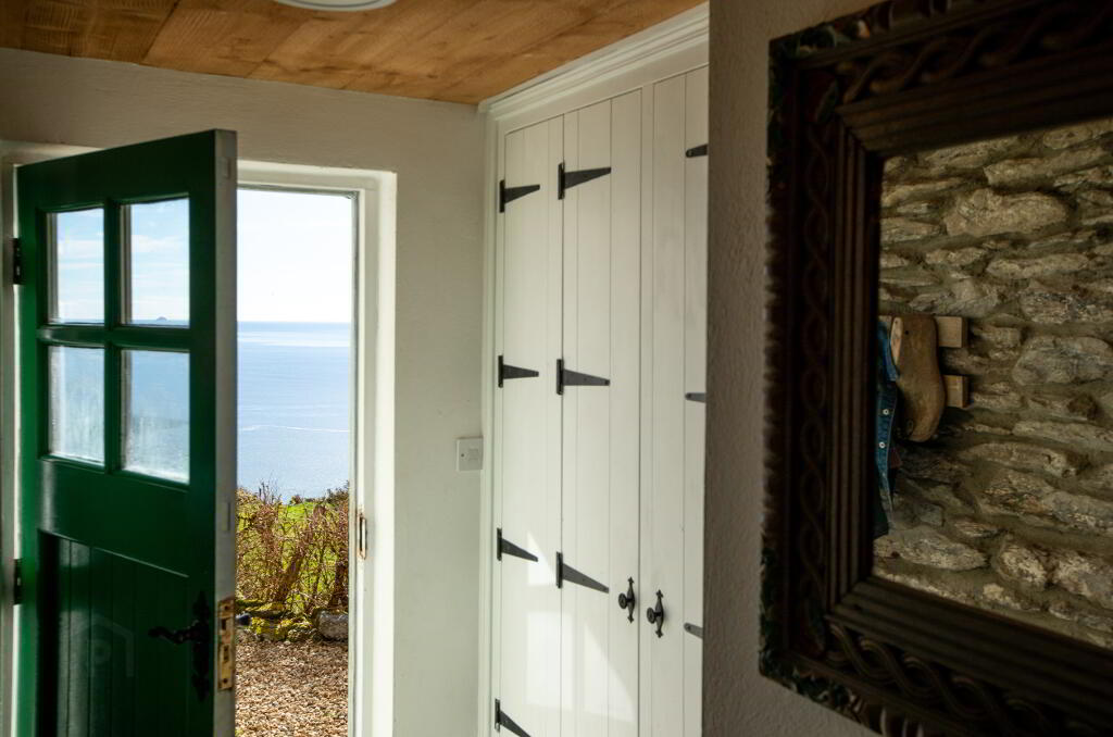 Stairs lead to two bedrooms on the first floor with stunning sea views.