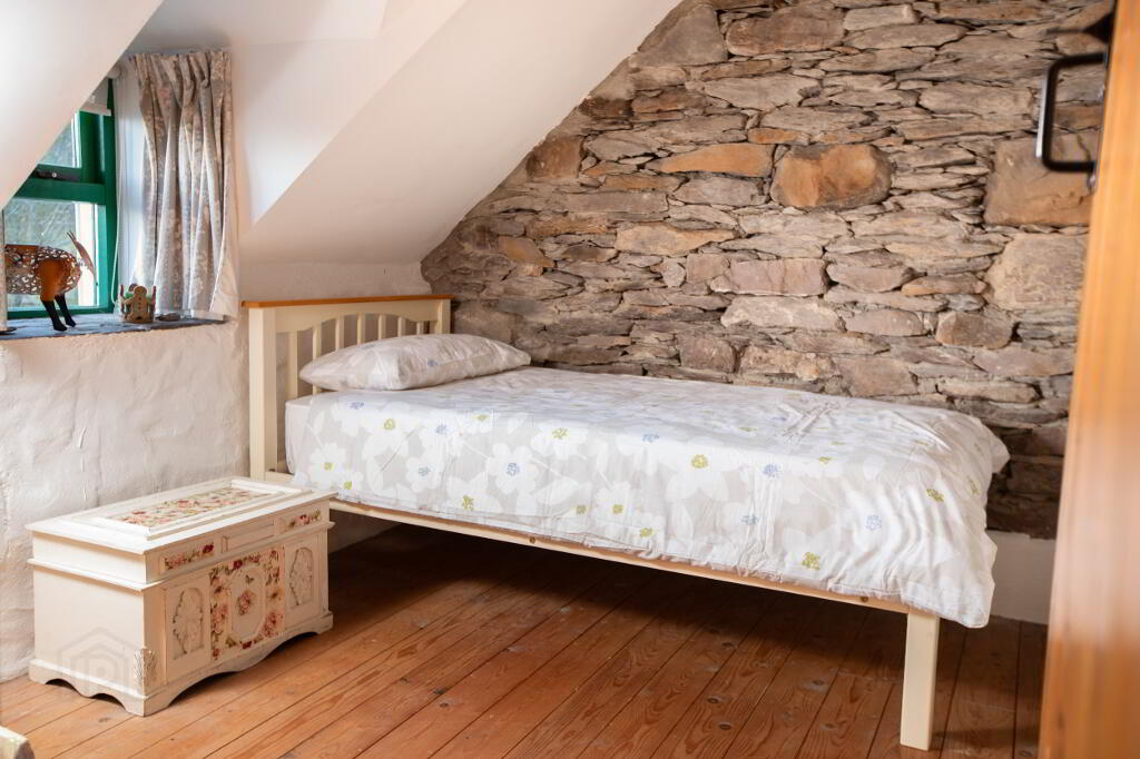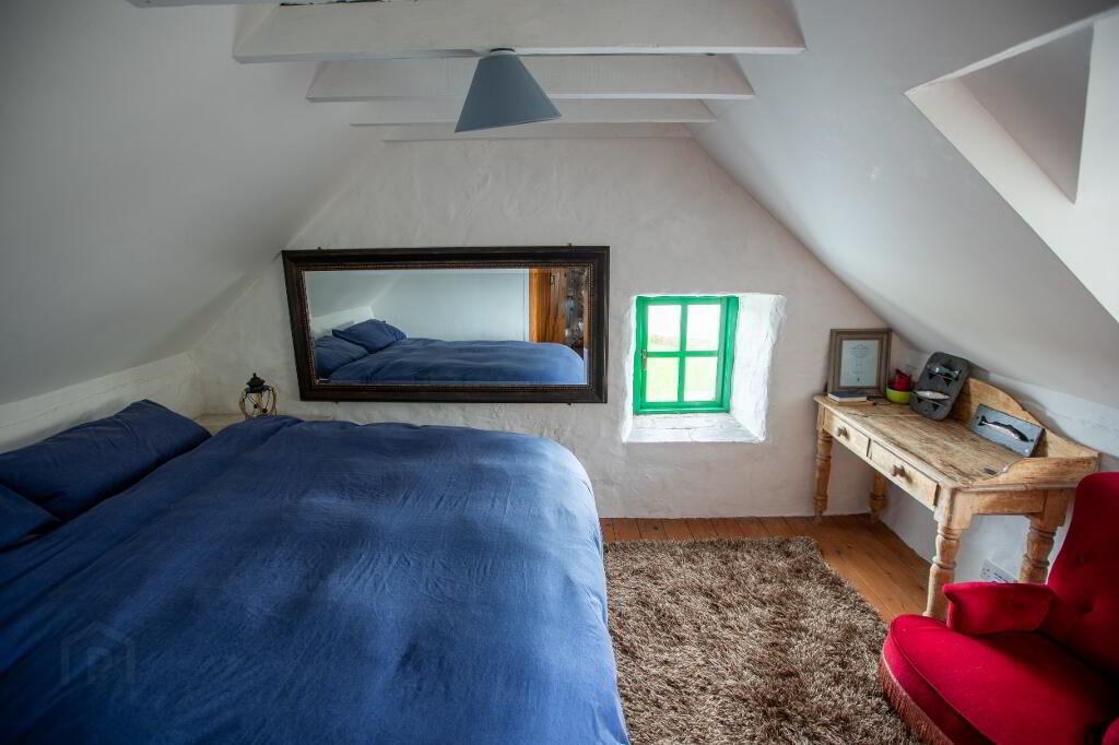 On a floor space of 92sqm, this cottage spans across two floors and is in show house condition throughout. If one is looking for the perfect Irish cottage with magical charm, natural light and warmth, then Scariff Cottage is the perfect property. The front kitchen / dining room has expansive windows with stunning sea views and boasts cut stone walls. There is a step up to a cosy living room with a raised fireplace and hardwood flooring. Liscannor stone from the entrance hallway leads to a large bathroom and separate toilet.
