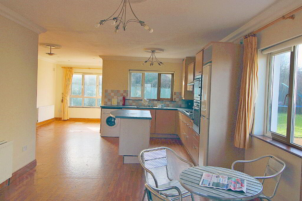 This home is deceptively spacious with a light filled interior and family friendly layout. The accommodation comprises: Hallway, sitting room with bay window, feature fireplace and double doors to the large bright kitchen / dining and sunroom with fitted kitchen, integrated appliances and island unit, double doors to patio area and back garden a super space for entertaining friends & family. The ground floor has 2 good sized bedrooms, one with en-suite and a main bathroom making this home a great future proof living space. At first floor level A Velux window floods the landing space with natural light, a further 2 bedrooms one with en suite and a 2nd family bathroom. Gas fired central heating, Double glazed windows. Enclosed gardens to front with ample car parking space to front and side and lovely south facing garden with a patio area to back to make the most of the sunnier days to come.