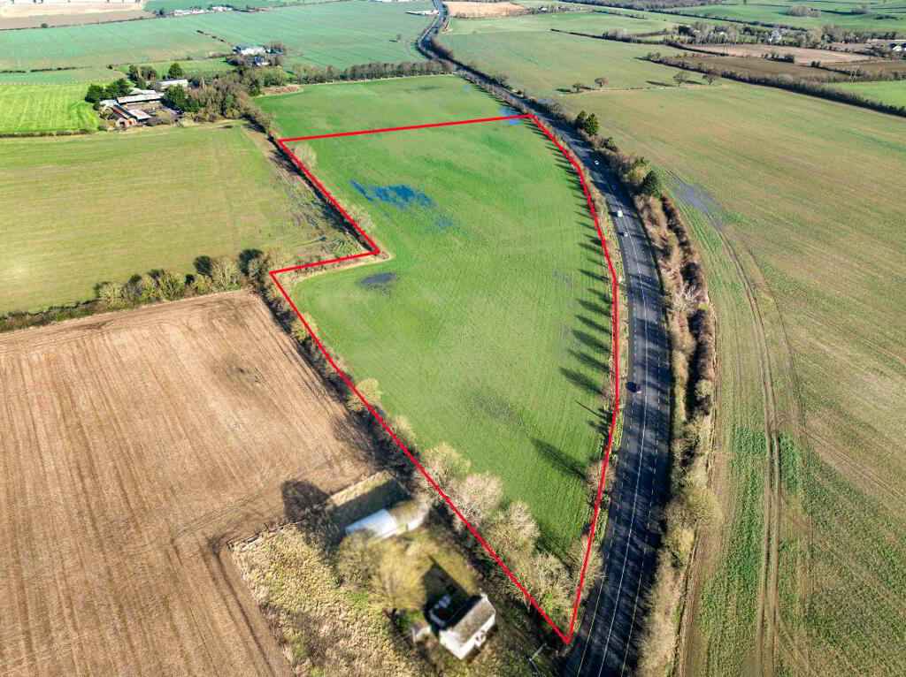 Excellent quality arable lands currently in cereal production, dual road frontage onto the main Carlow Castledermot Road and the Knocknagee Road just on the Carlow Kildare border close to the MP Motorway. Laid out in 3 good sized fields to be offered in one or three lots.