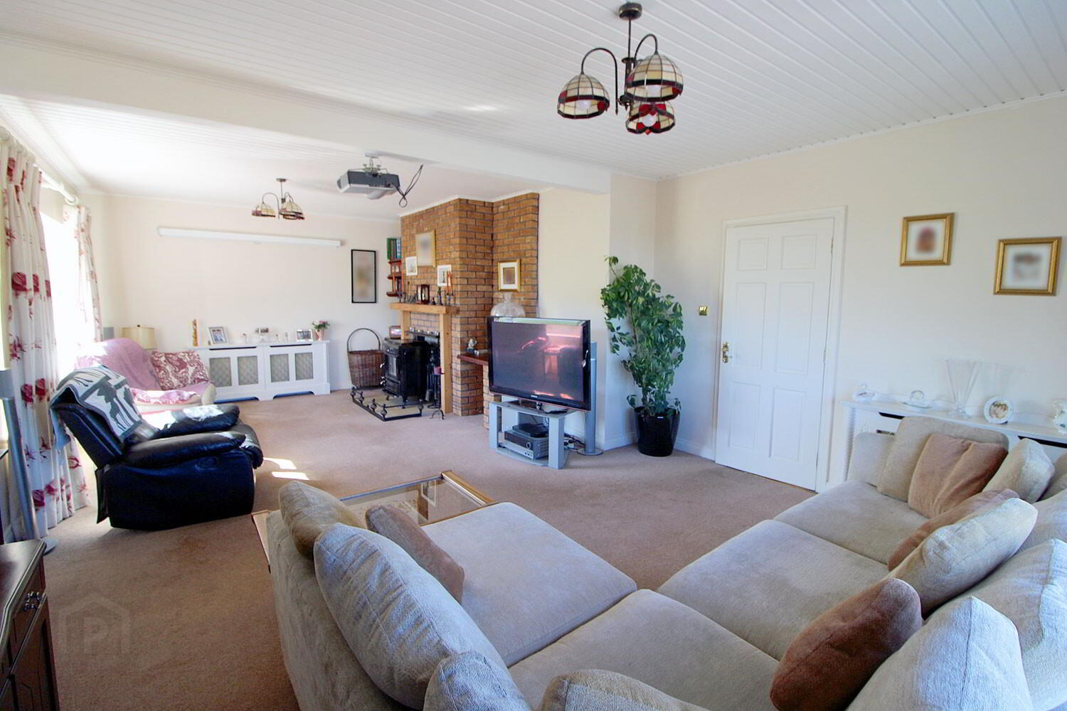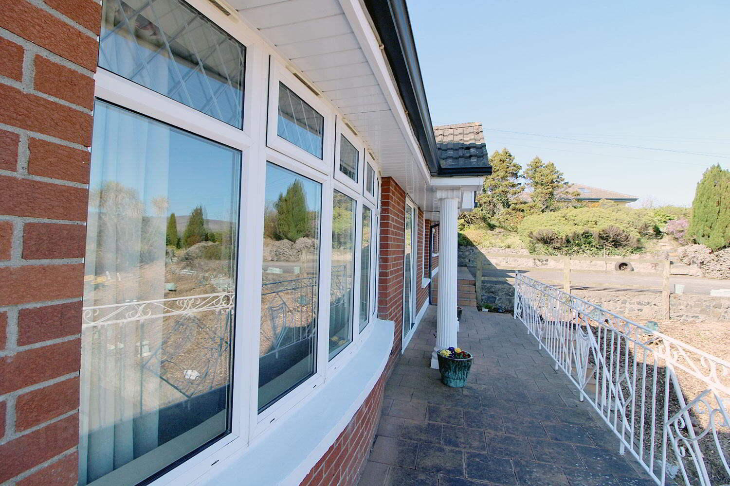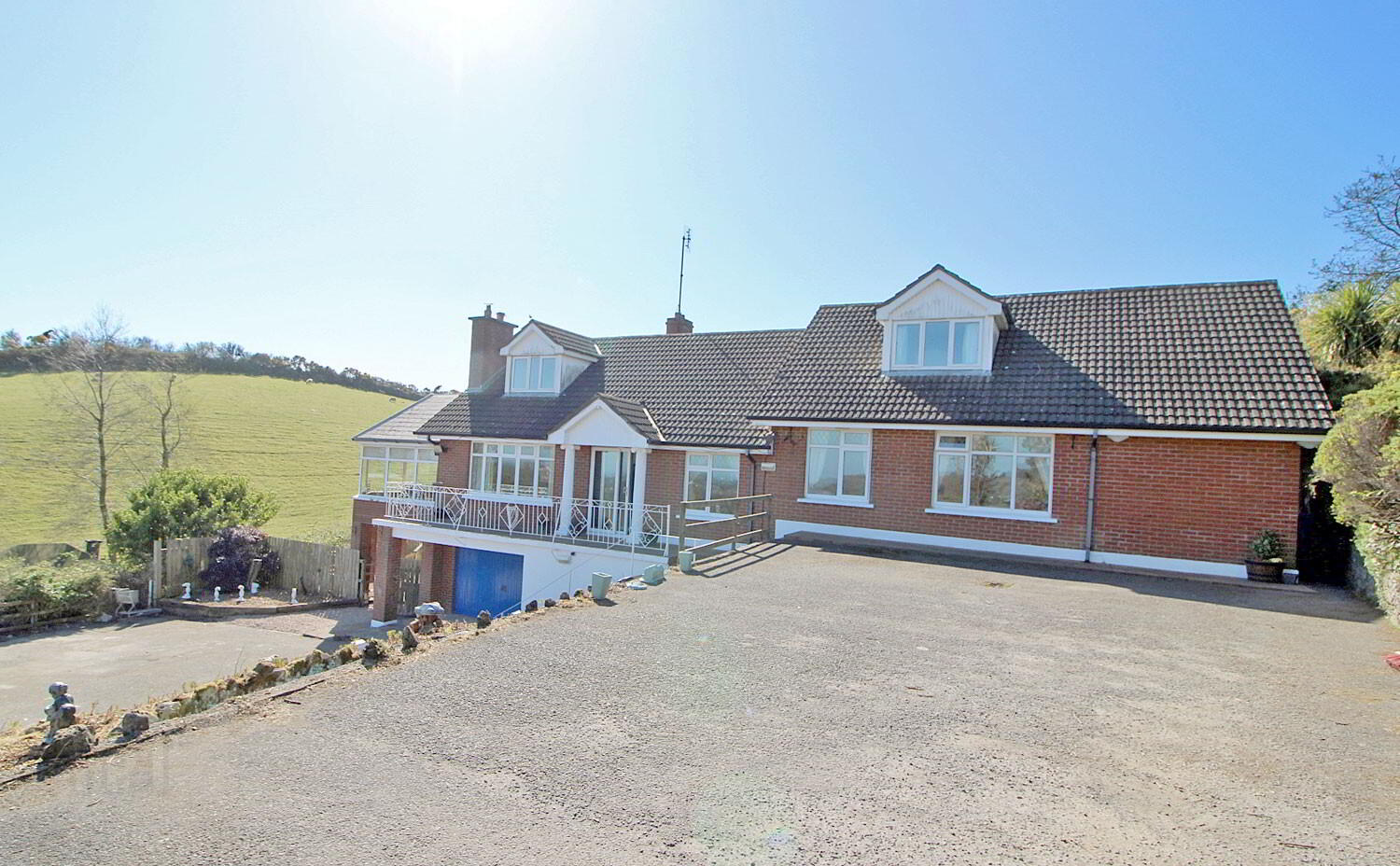 The layout comprises: A welcoming entrance hallway with ceramic tiled flooring, elegant sitting room with a feature fireplace and wood-burning stove, double doors lead into a standout feature of the home – a large, light-filled sunroom that extends outward like a pier on plinths, offering unmatched views of the landscape. spacious, country-style kitchen and dining area with beautifully crafted fitted units, separate utility room for added convenience. A few steps up from the hallway lead to three generously sized bedrooms, the master suite includes a bedroom, walk-in wardrobe, and a large en-suite shower room. A stylish family bathroom completes this level.  Upstairs there are two versatile attic rooms a Guest WC and an additional full bathroom with shower unit & corner bath. At the lower level of the house is the Integrated garage and carport. Oil-fired central heating.