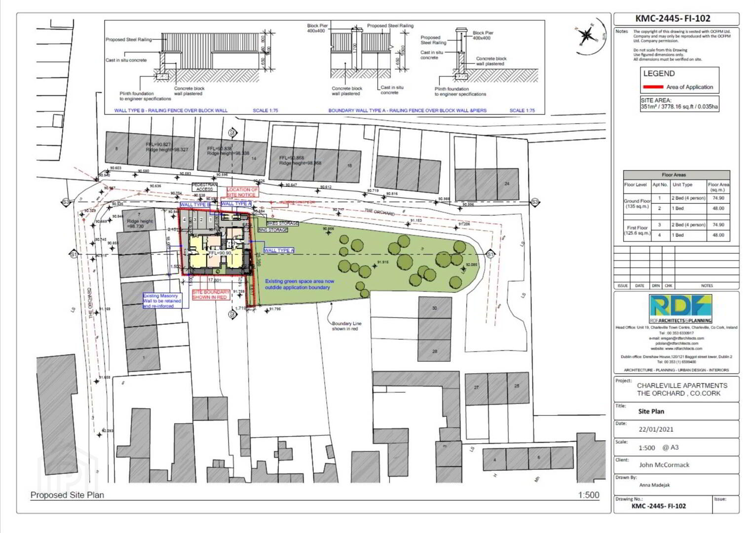 REA Dooley Group present this 0.035 ha / 0.09 acre site which has full planning permission for a development of 4 Apartments (270m2) comprising of 2 x 2 bed apartments - 74.90m2 each, 2 x 1 bed apartments - 48m2 each, 4 x private parking spaces in front of apartment block, bin storage, bike storage and green area.